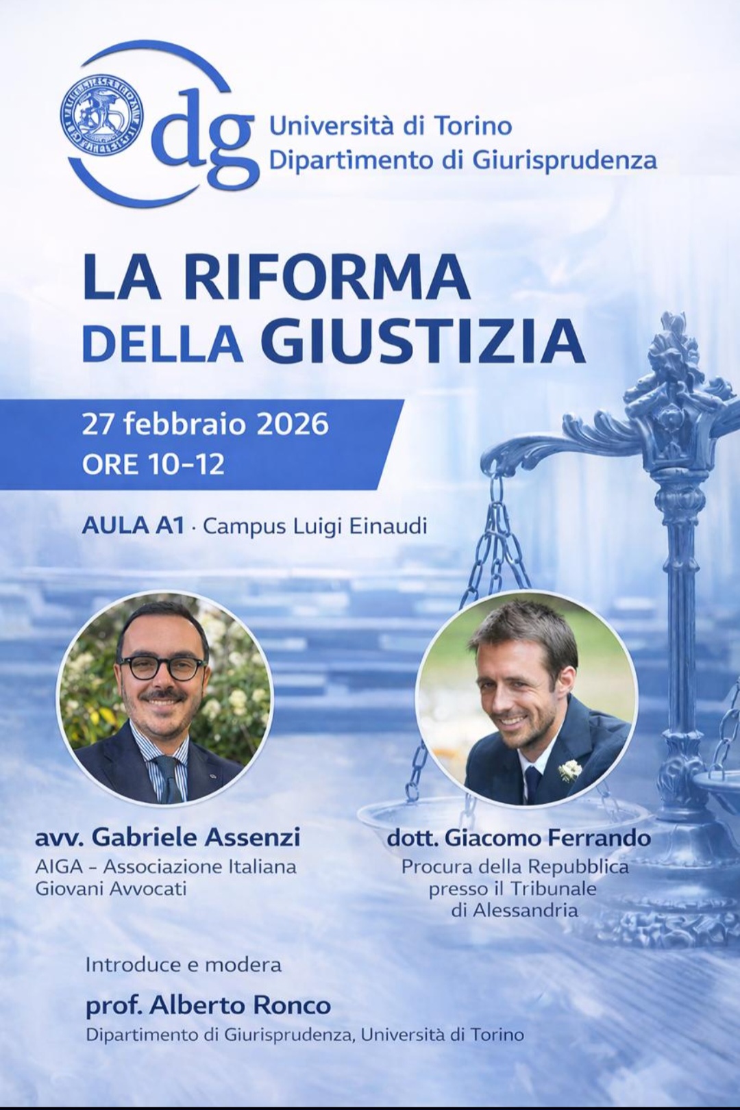 Introduce e modera il Prof. Alberto Ronco (Dipartimento di Giurisprudenza, Università di Torino).
